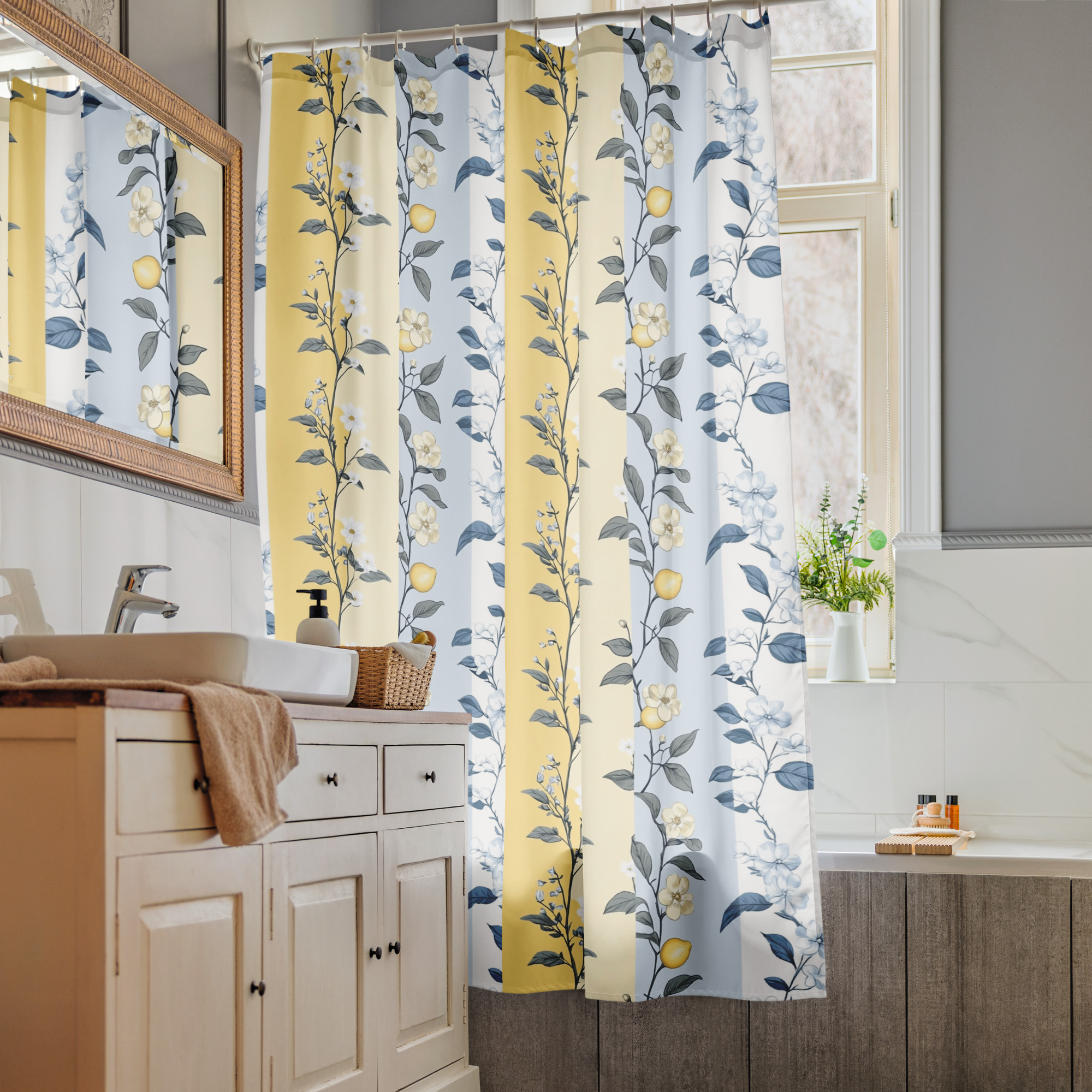 Shower curtain Lemon-Floral-Shabby-Chic